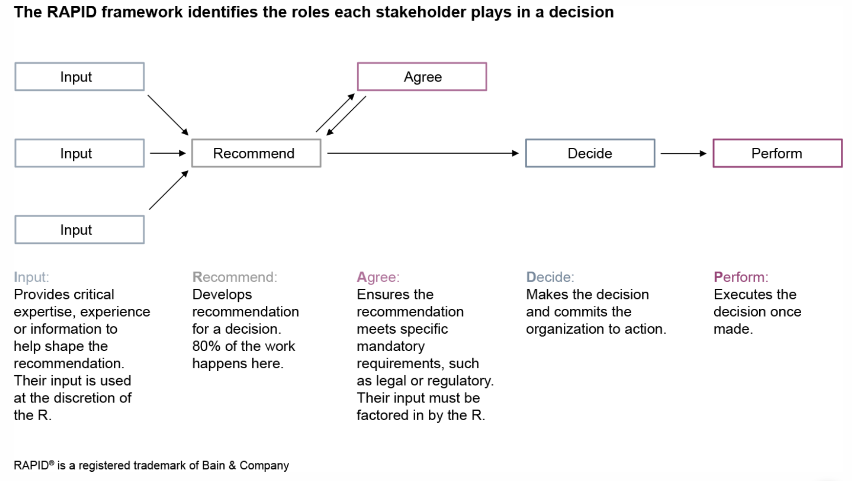 A clear framework for defining who provides input, who decides, and who executes—helping leaders involve the right people at the right time while maintaining accountability and momentum.