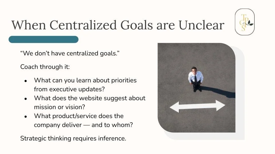 Your role is to inspire strategic thinking by building clarity, expanding perspective, and embedding disciplined questioning.